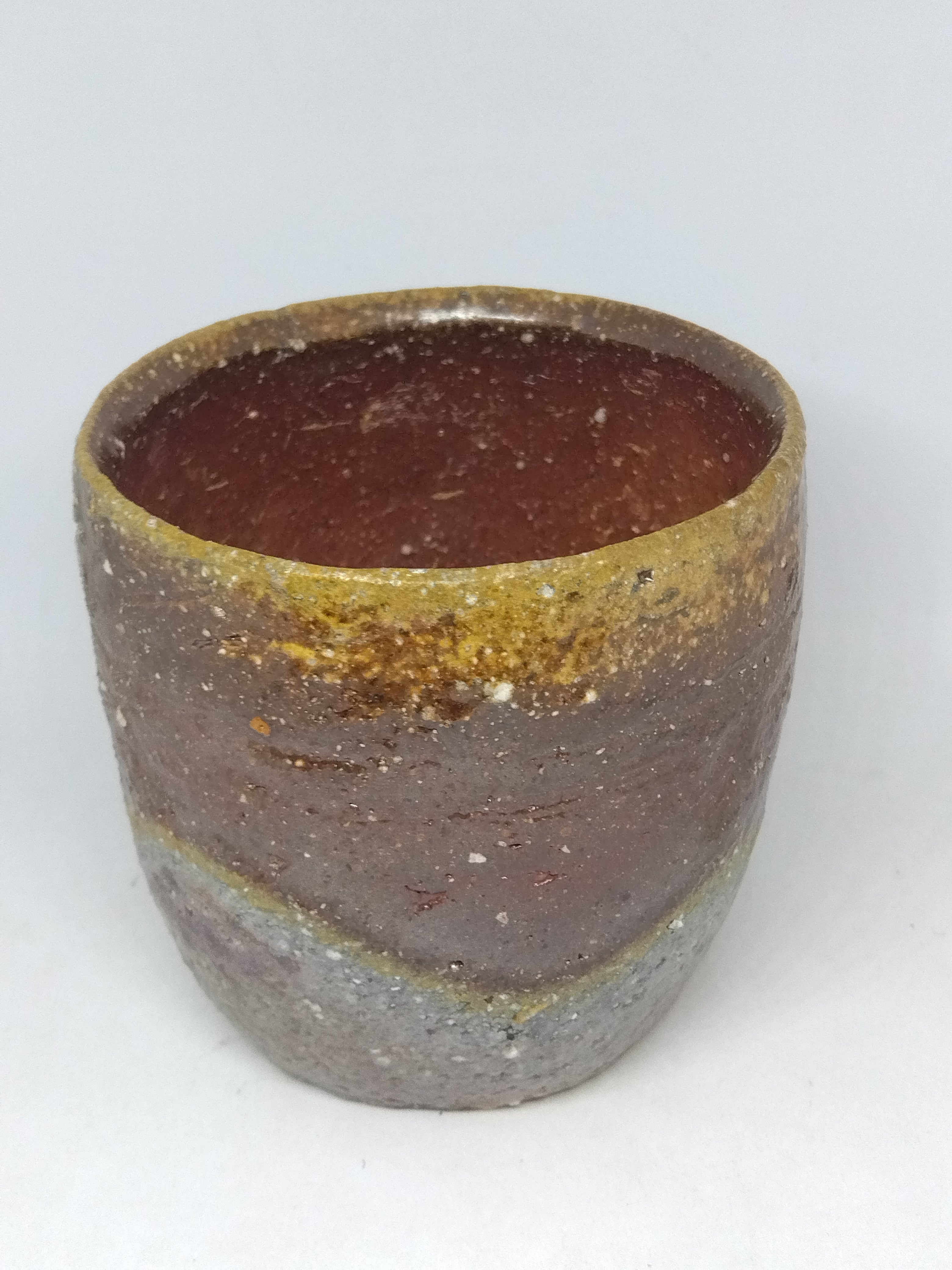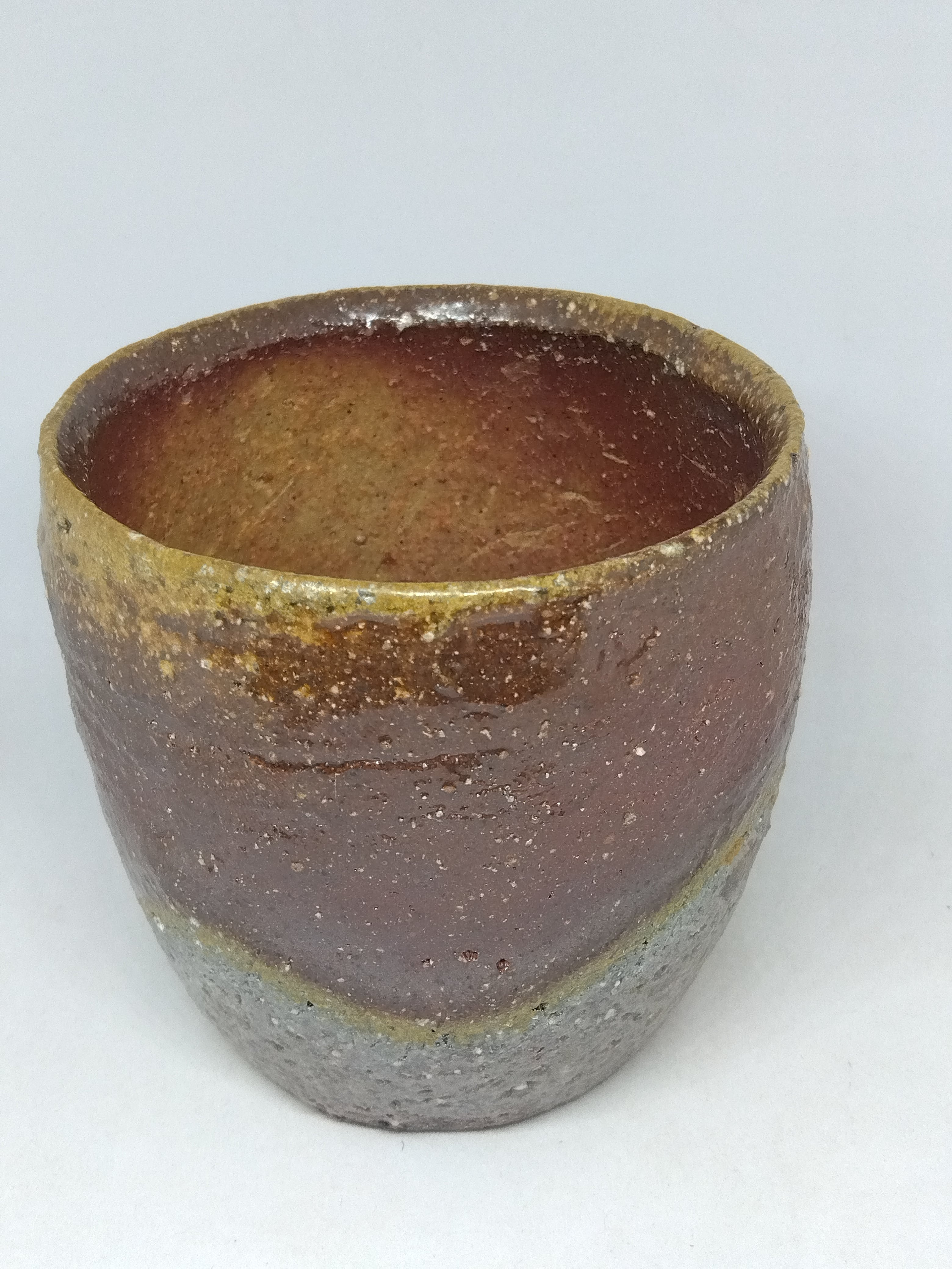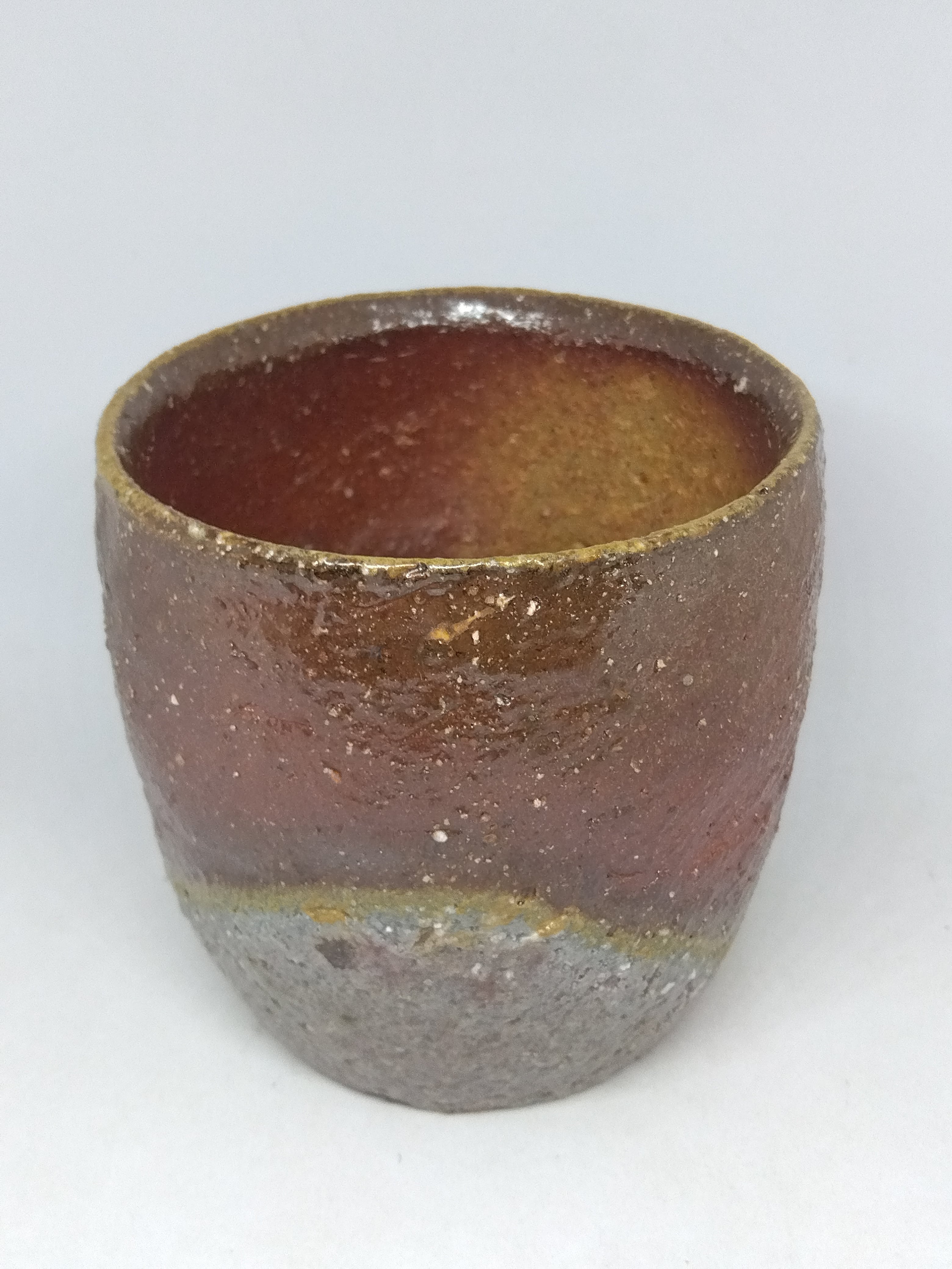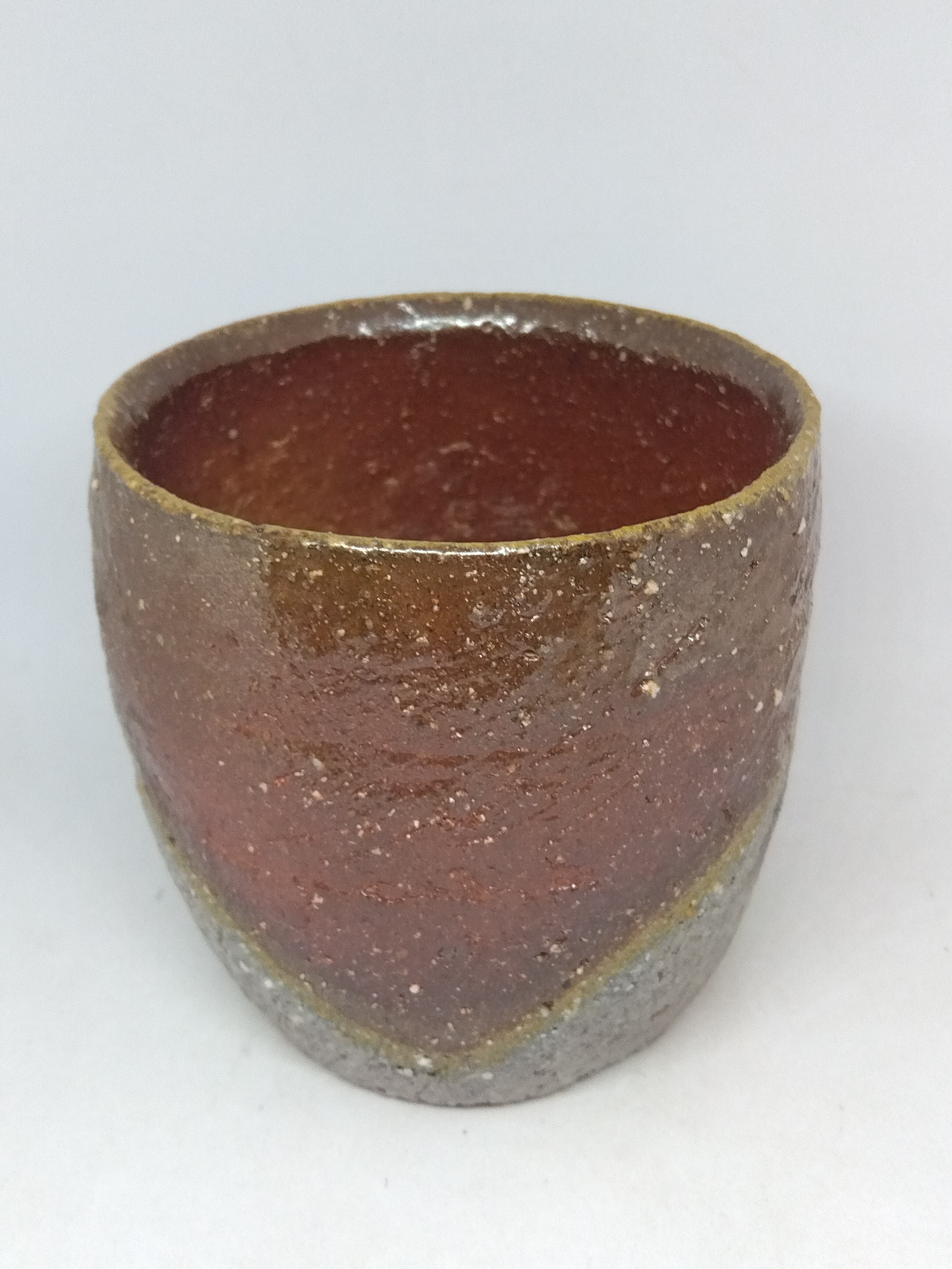 自然練込の盃です。口縁と見込みの胡麻も見どころの作品です。
