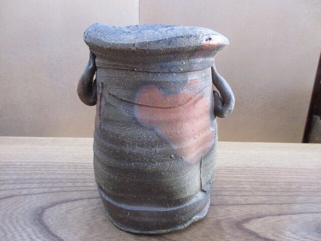 両面に赤い窯変の焼けがありどちらの面も見ごたえがあります。