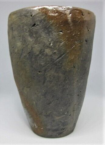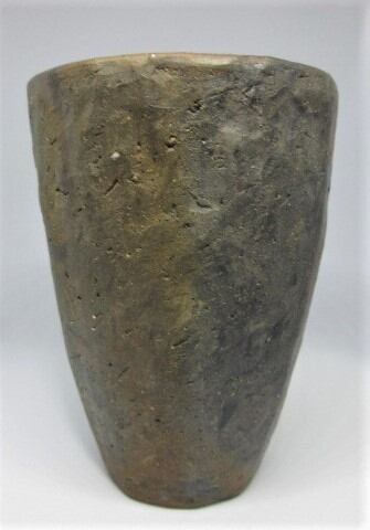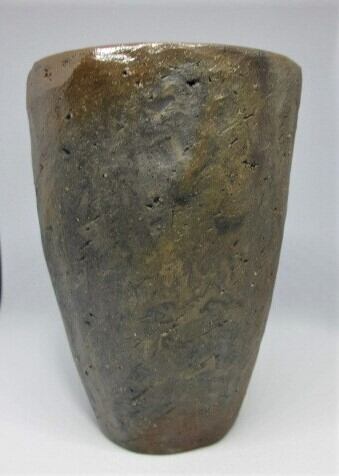 還元焼成により青く焼き上がった自然練込のビアマグです。