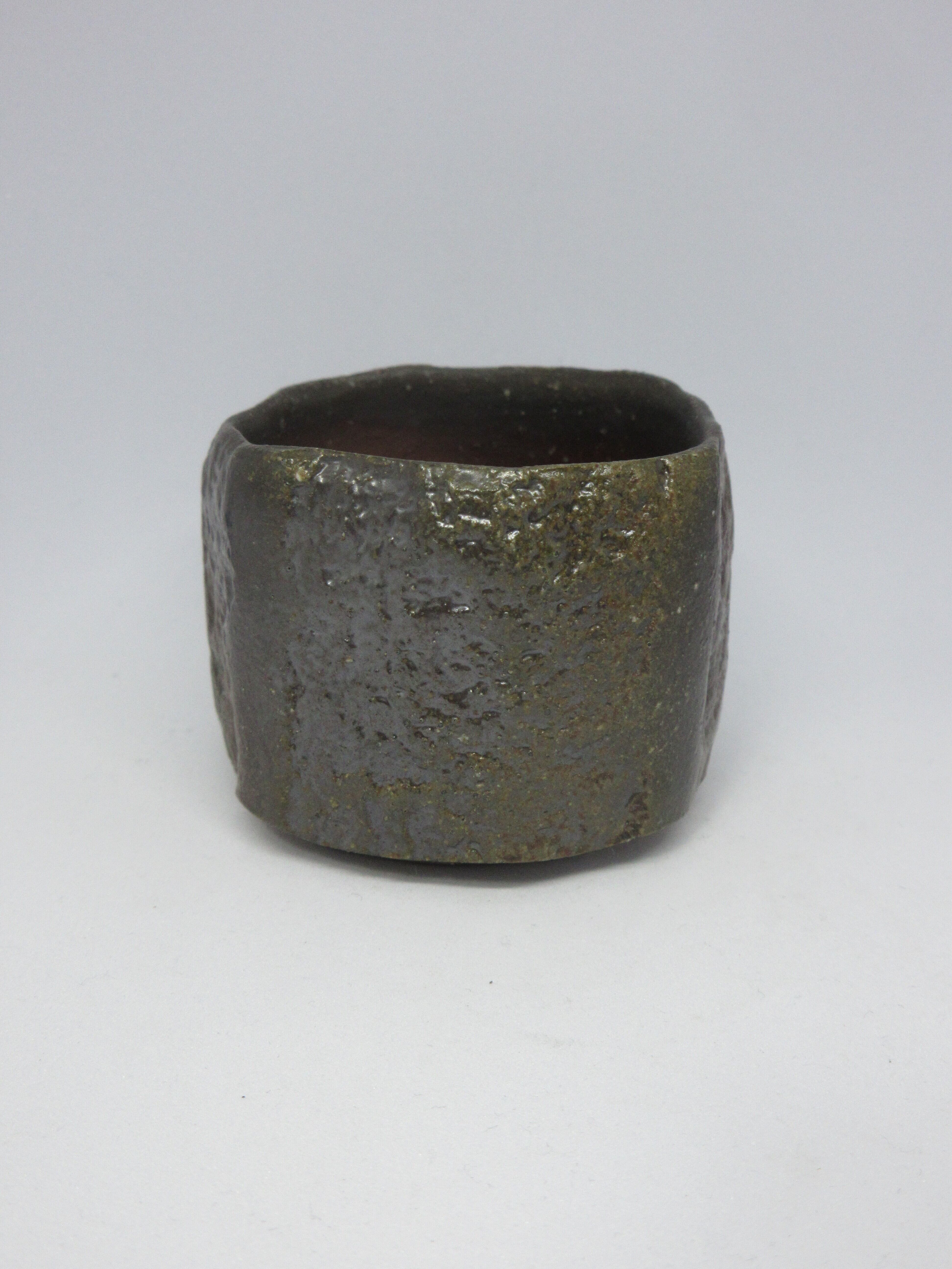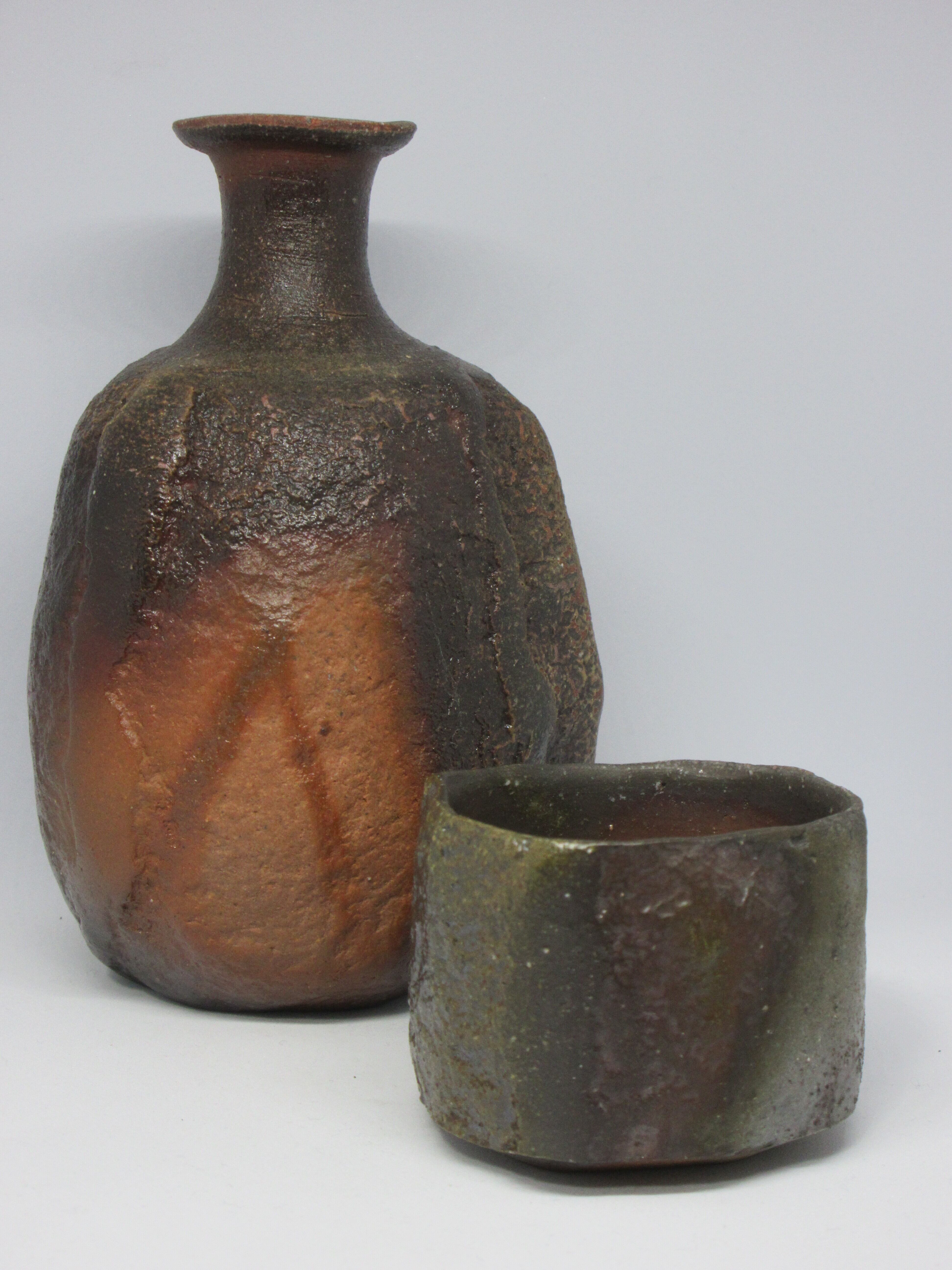 徳利とぐい吞のセットです。粘土を刳り貫いて造る刳り貫きという技法で造られています。赤い抜けとカセ胡麻の焼けが楽しめます。