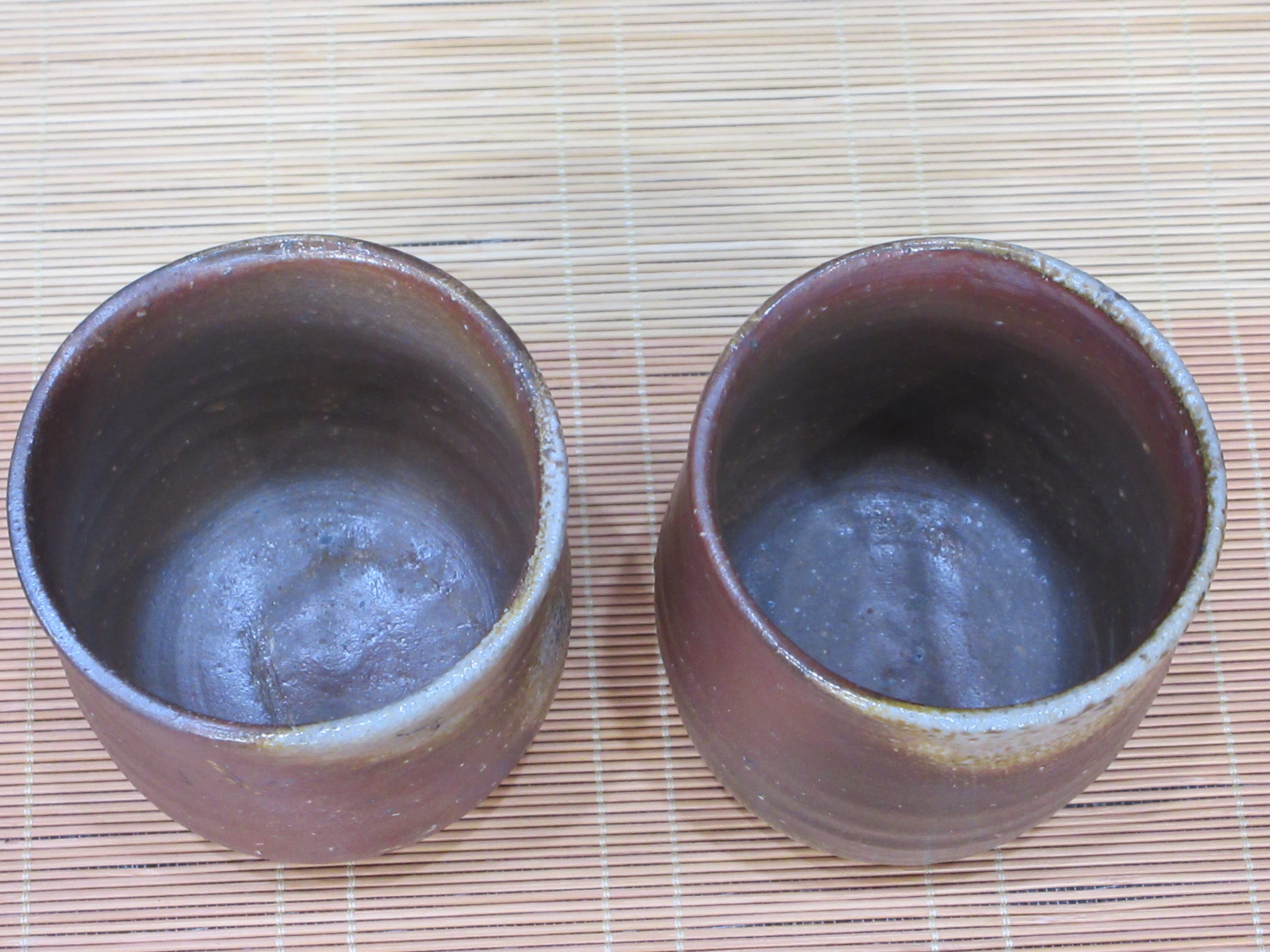 桟切り(サンギリ)と呼ばれる焼けの湯呑セットです。