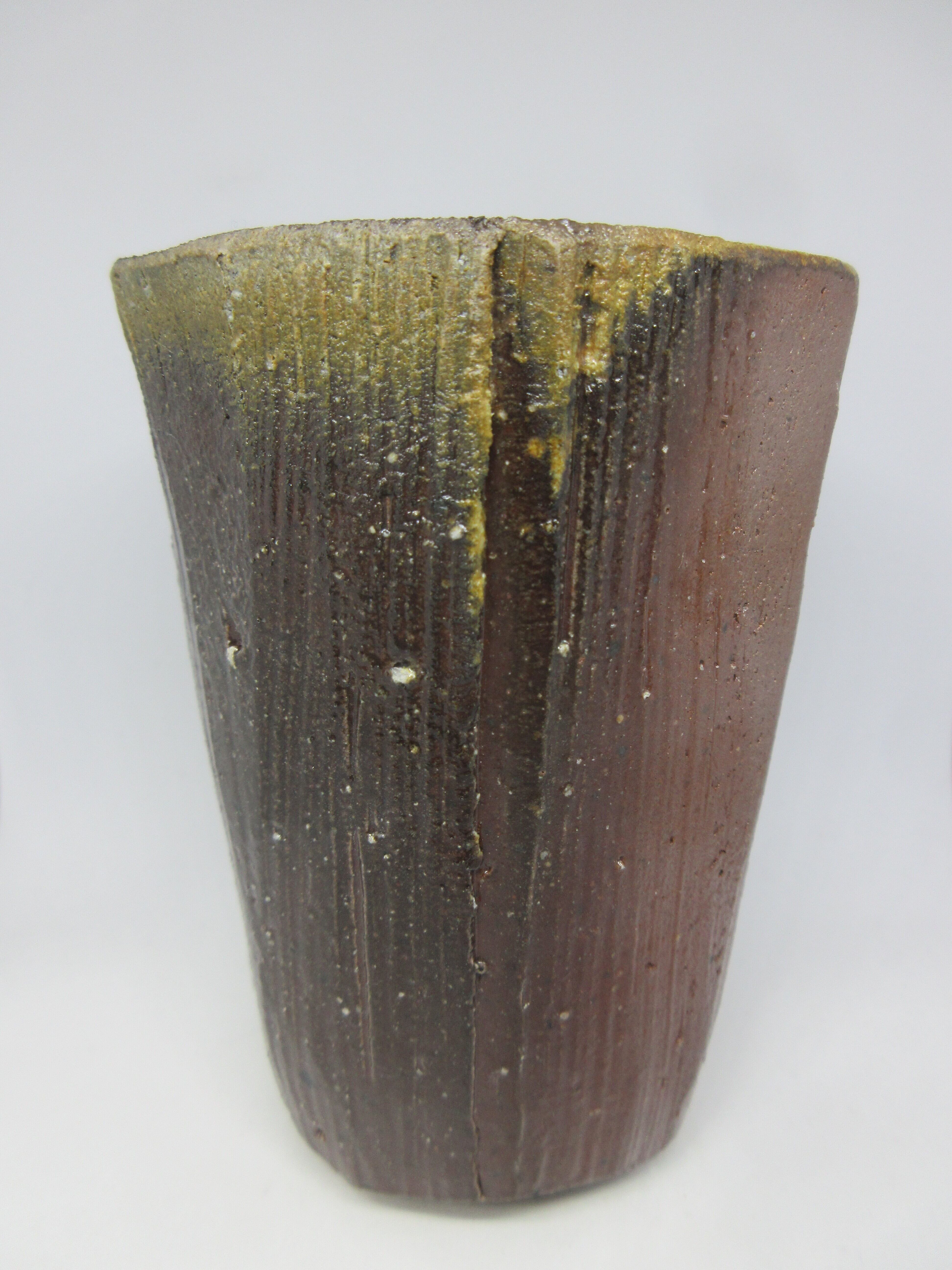 縦に入ったシャープな切り込みや口縁に回った胡麻がアクセントになっています。