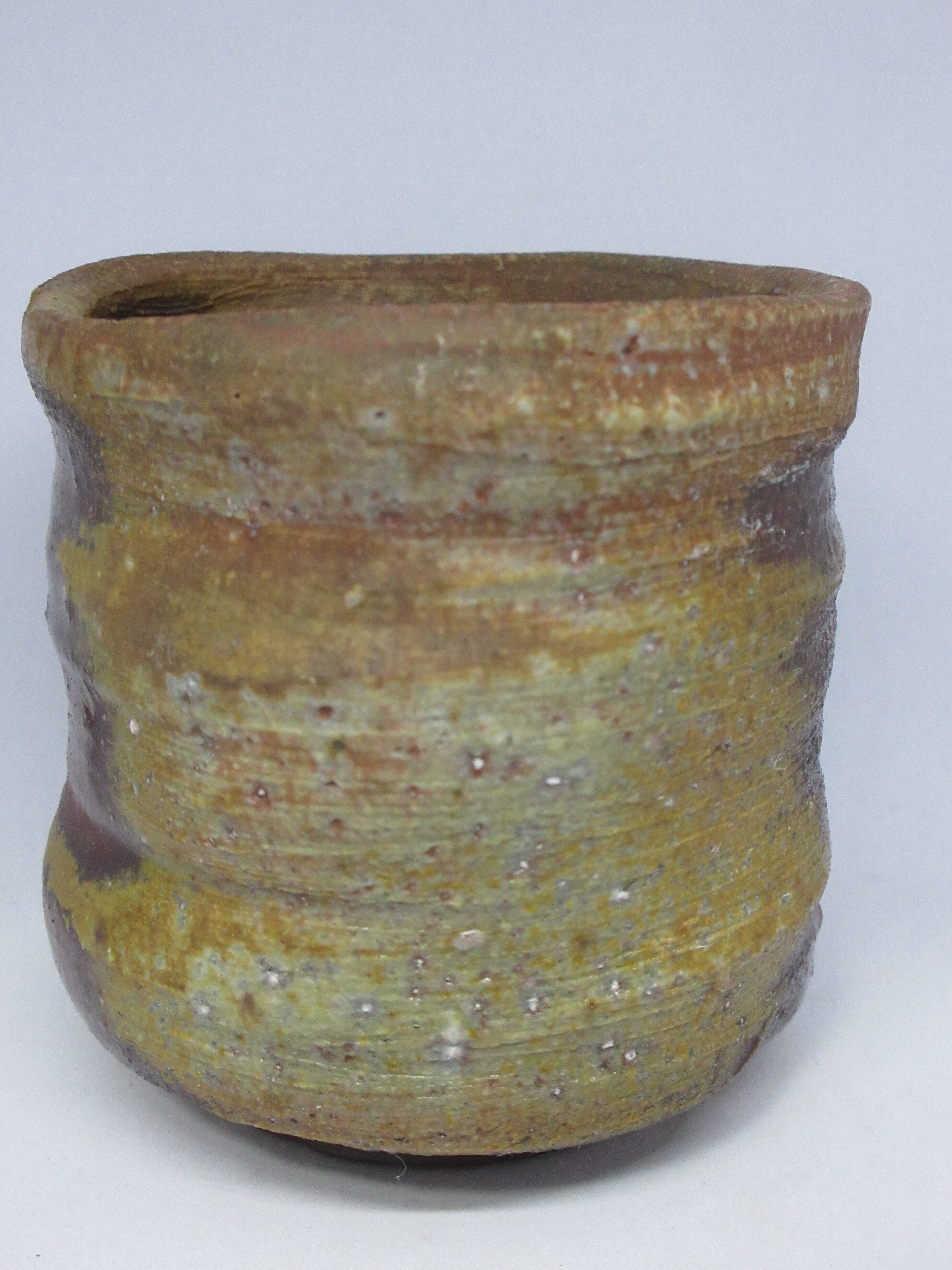 紐造りで丁寧に造られ、赤く焼けた地肌に、黄色い胡麻と白っぽい胡麻の景色が楽しめる湯呑です。底部の胡麻も見所です。