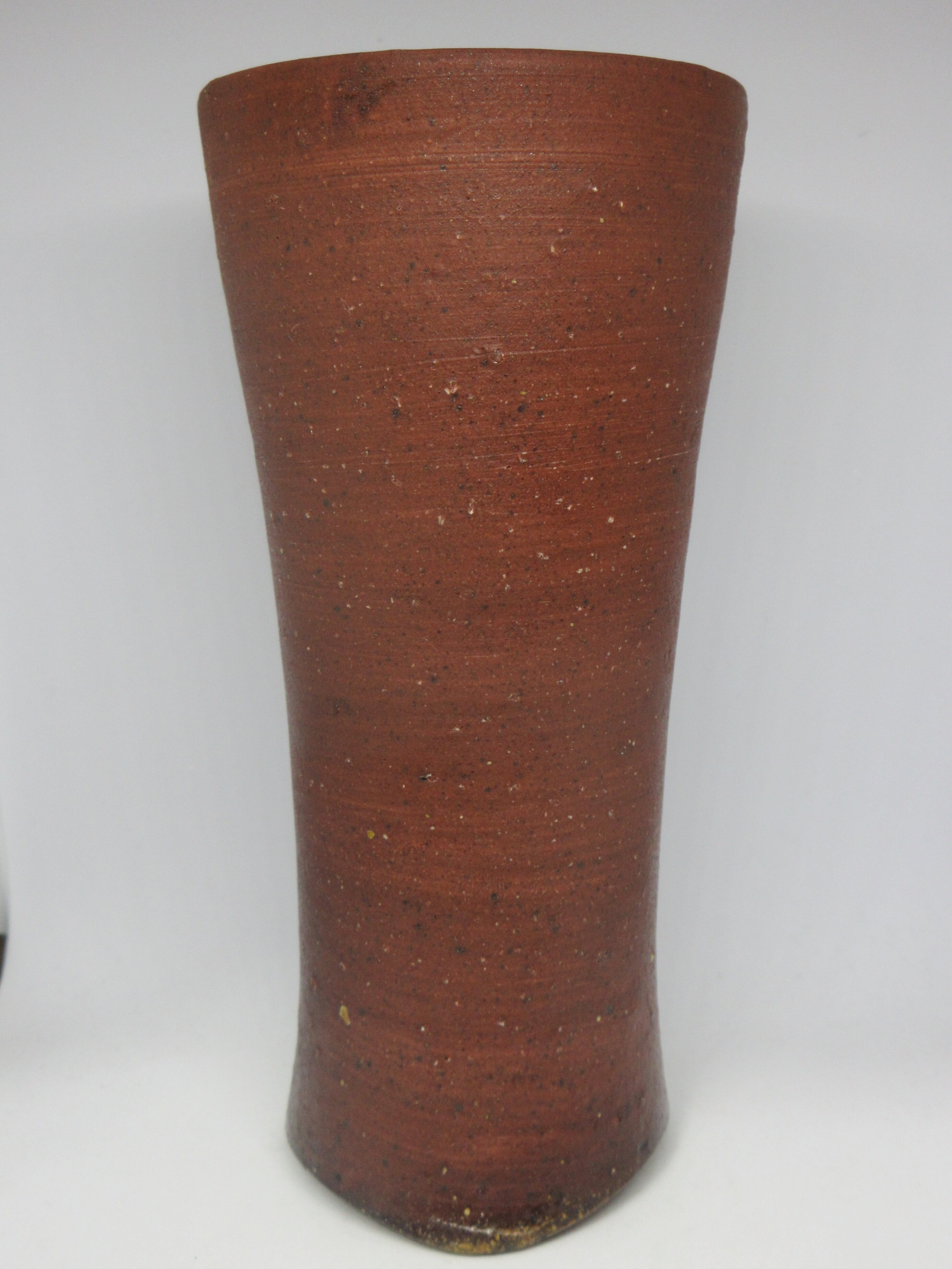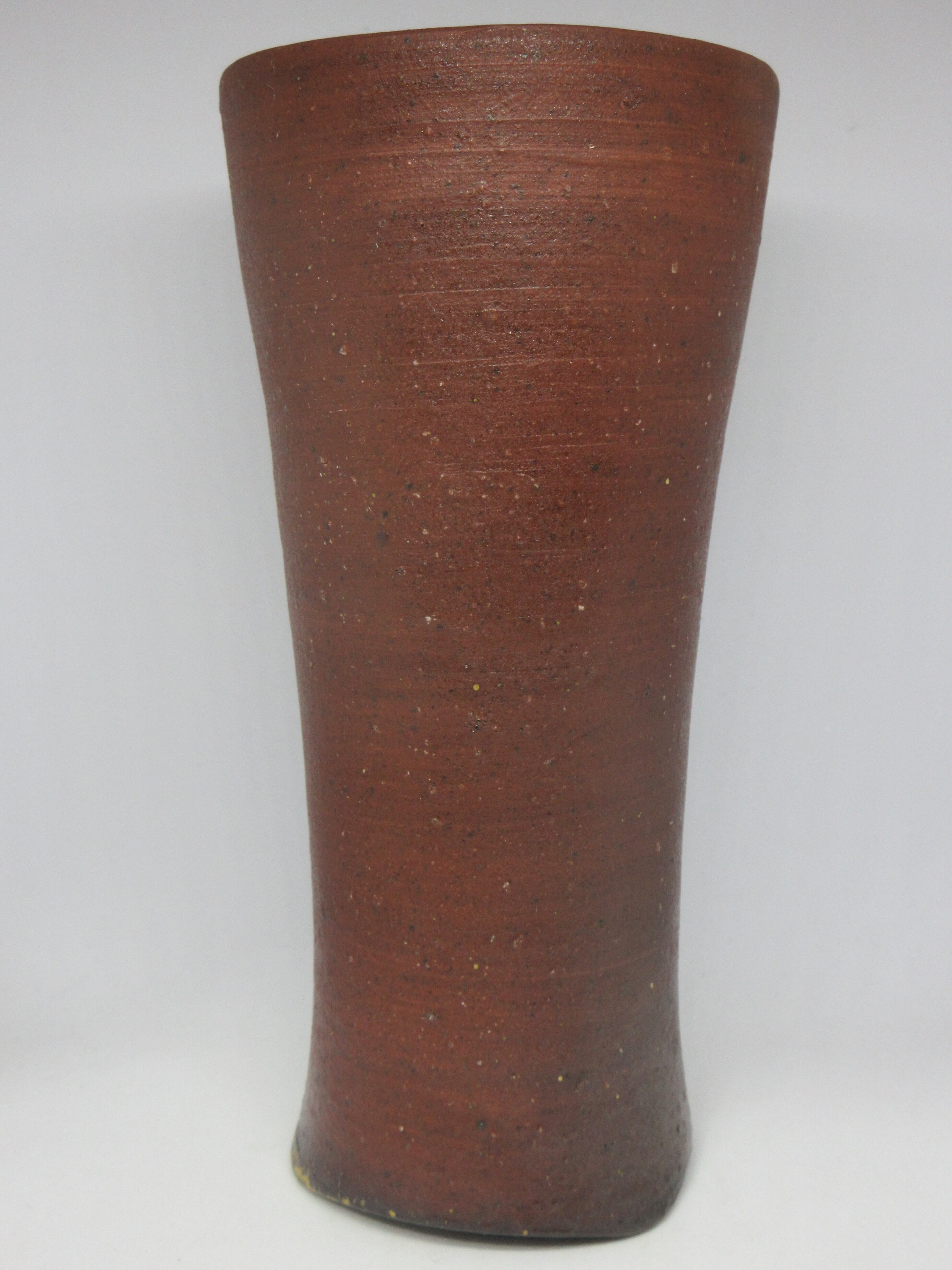 レンガ色の綺麗なロングサイズののビアマグです。使い込むと土味が馴染んでくるので育てるのが楽しみな作品です。