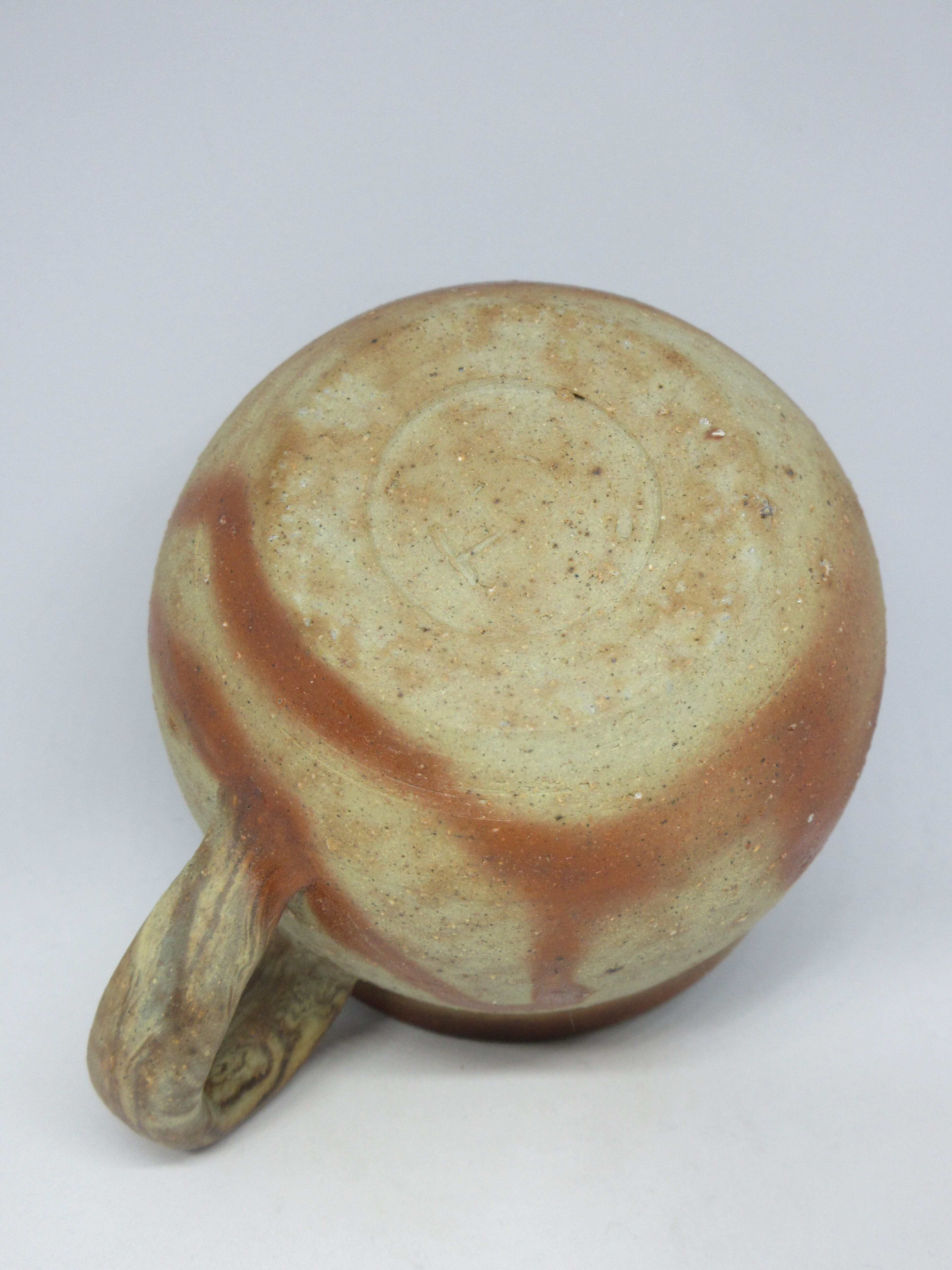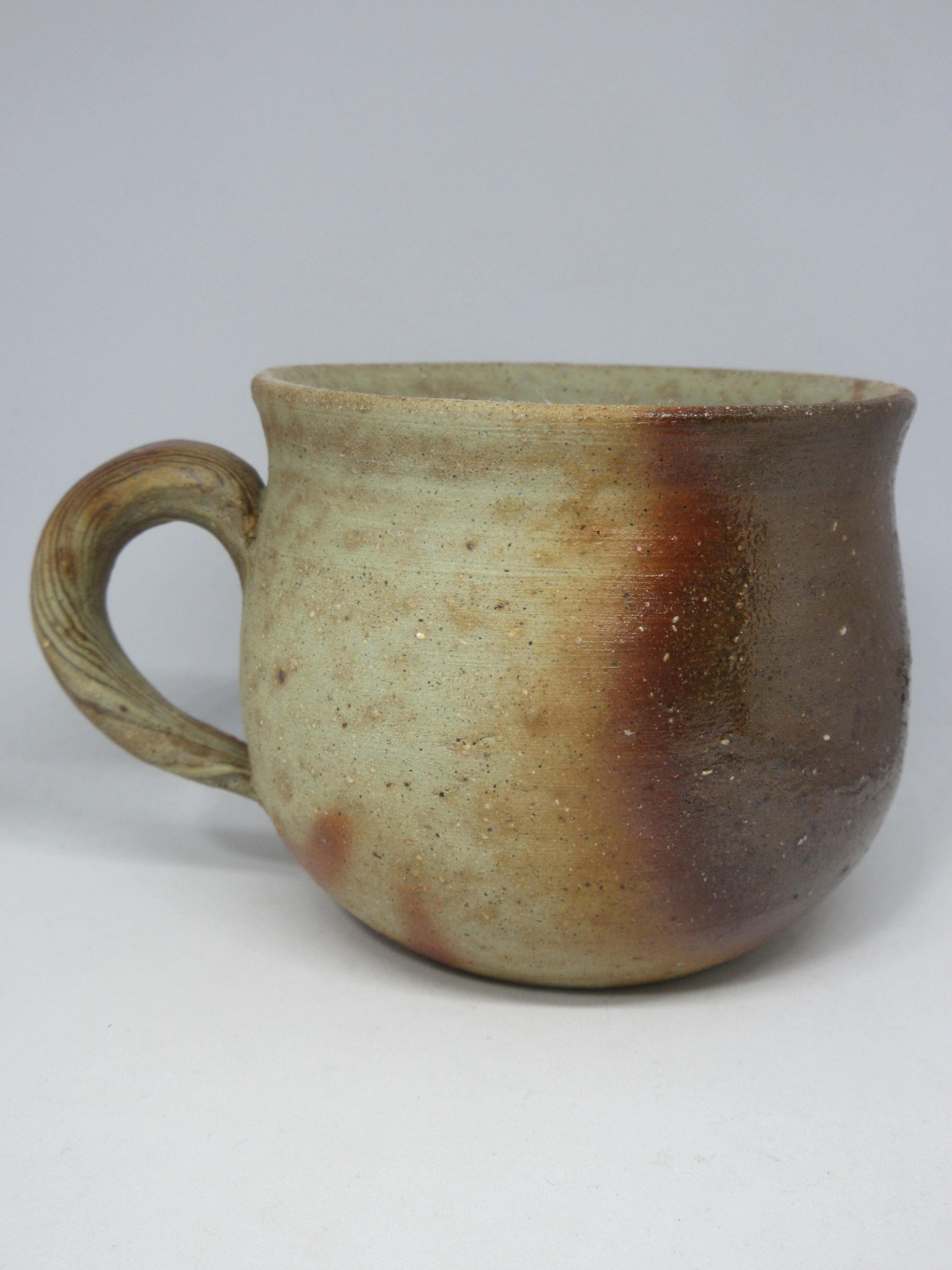 持ち手部分のマーブルの焼け、内側の土肌が魅力的な作品です。