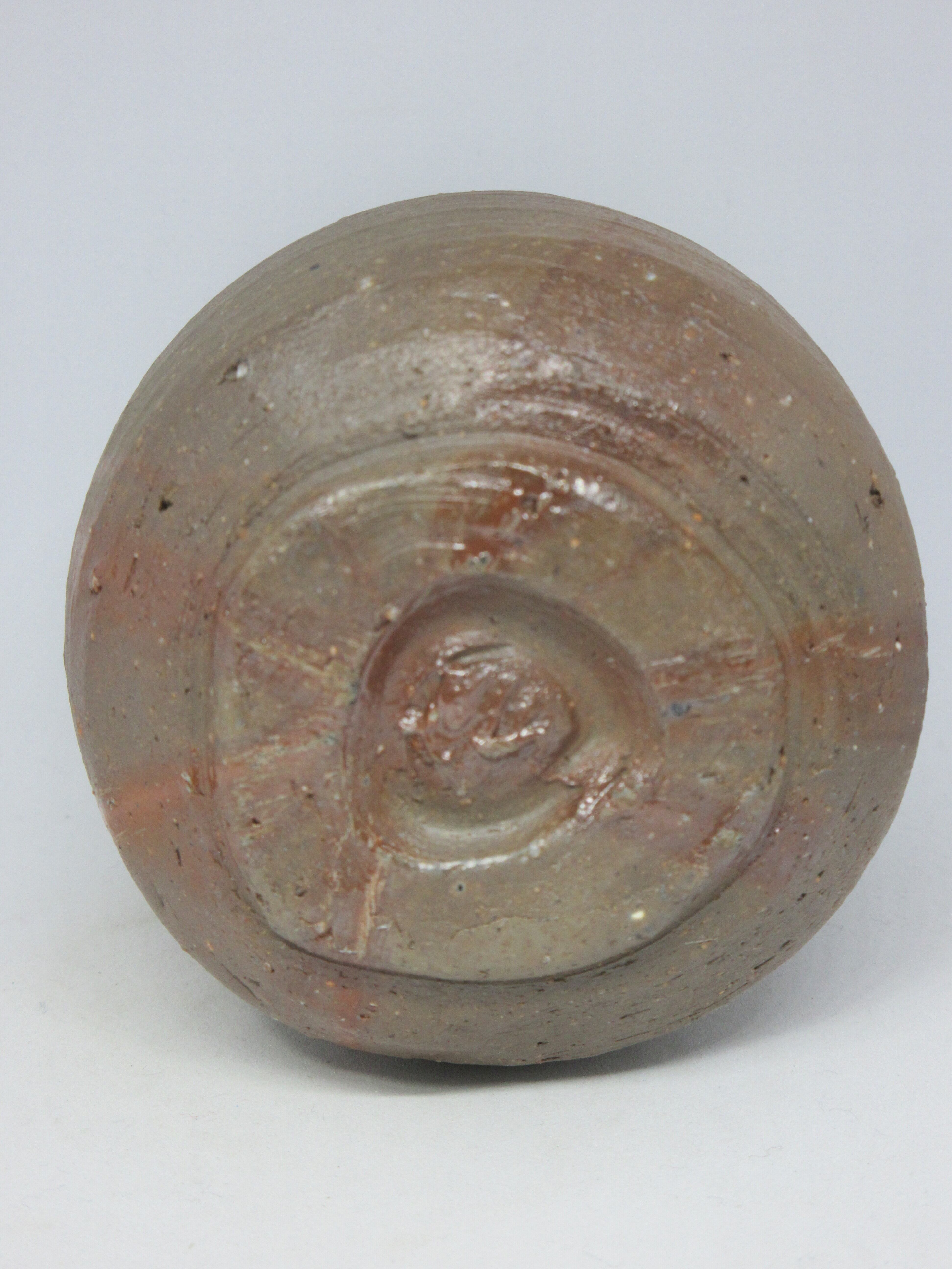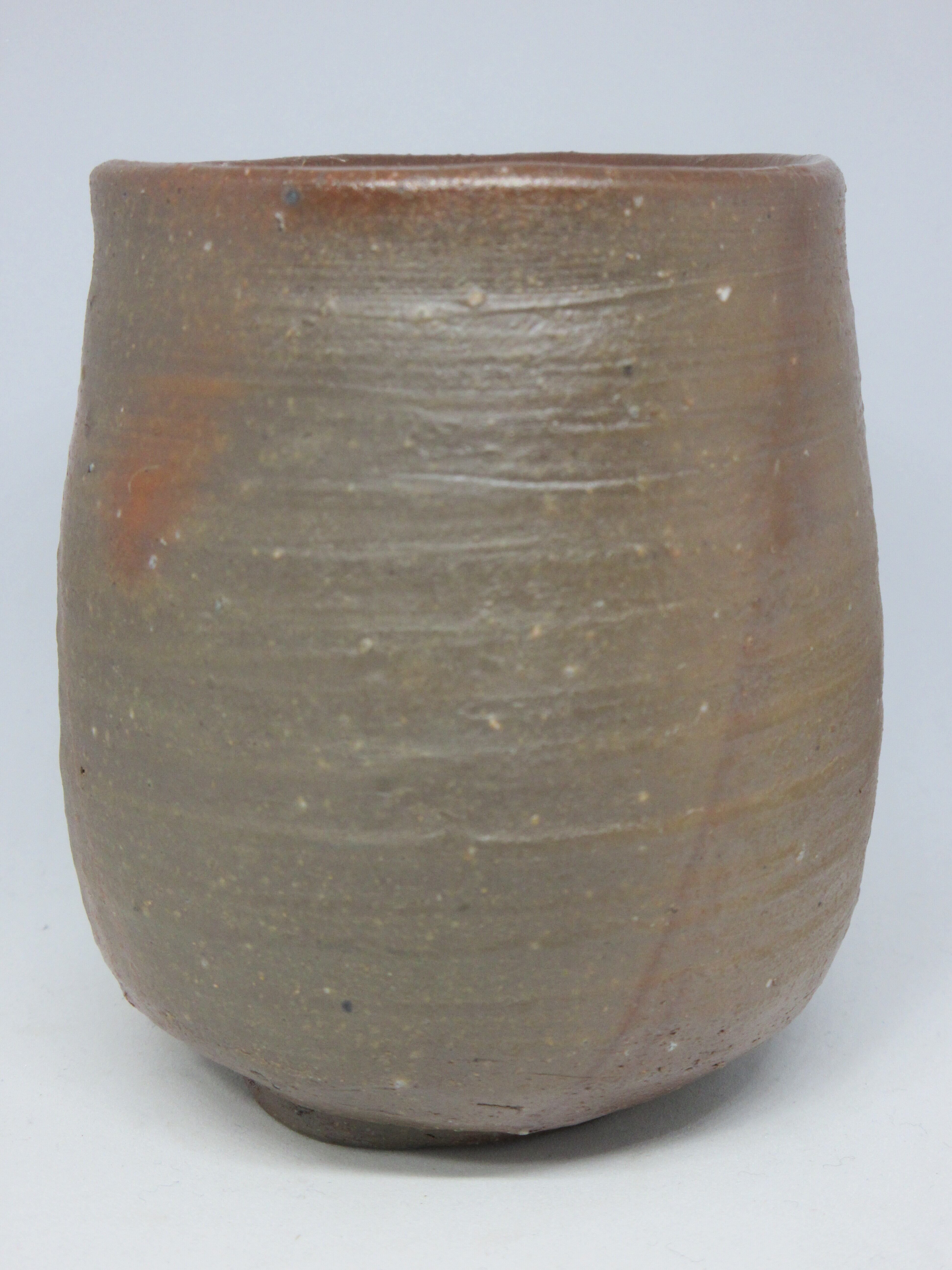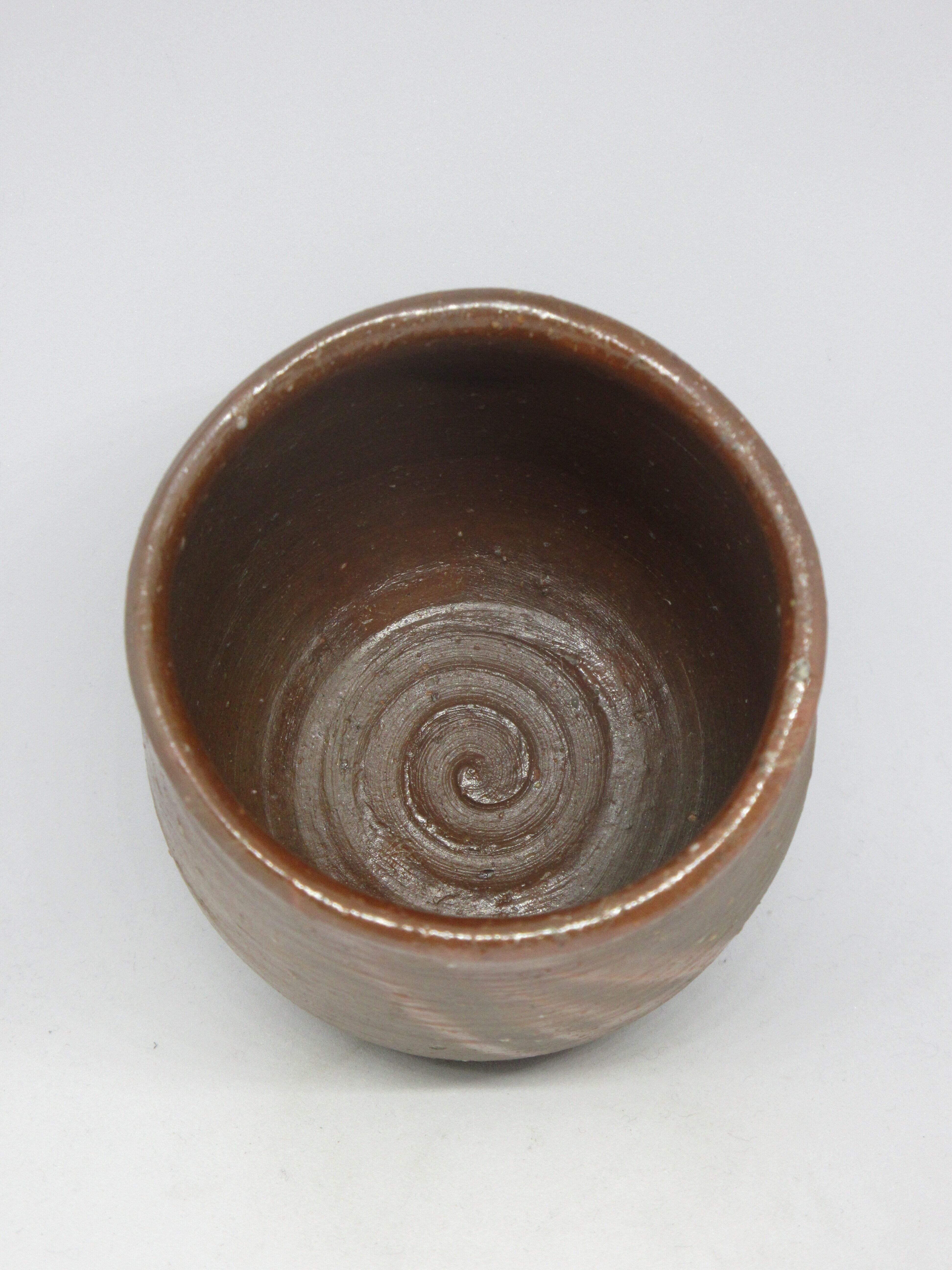 登り窯で焼かれた緋襷の湯呑です。青い地色にオレンジ色の襷が映える作品です。