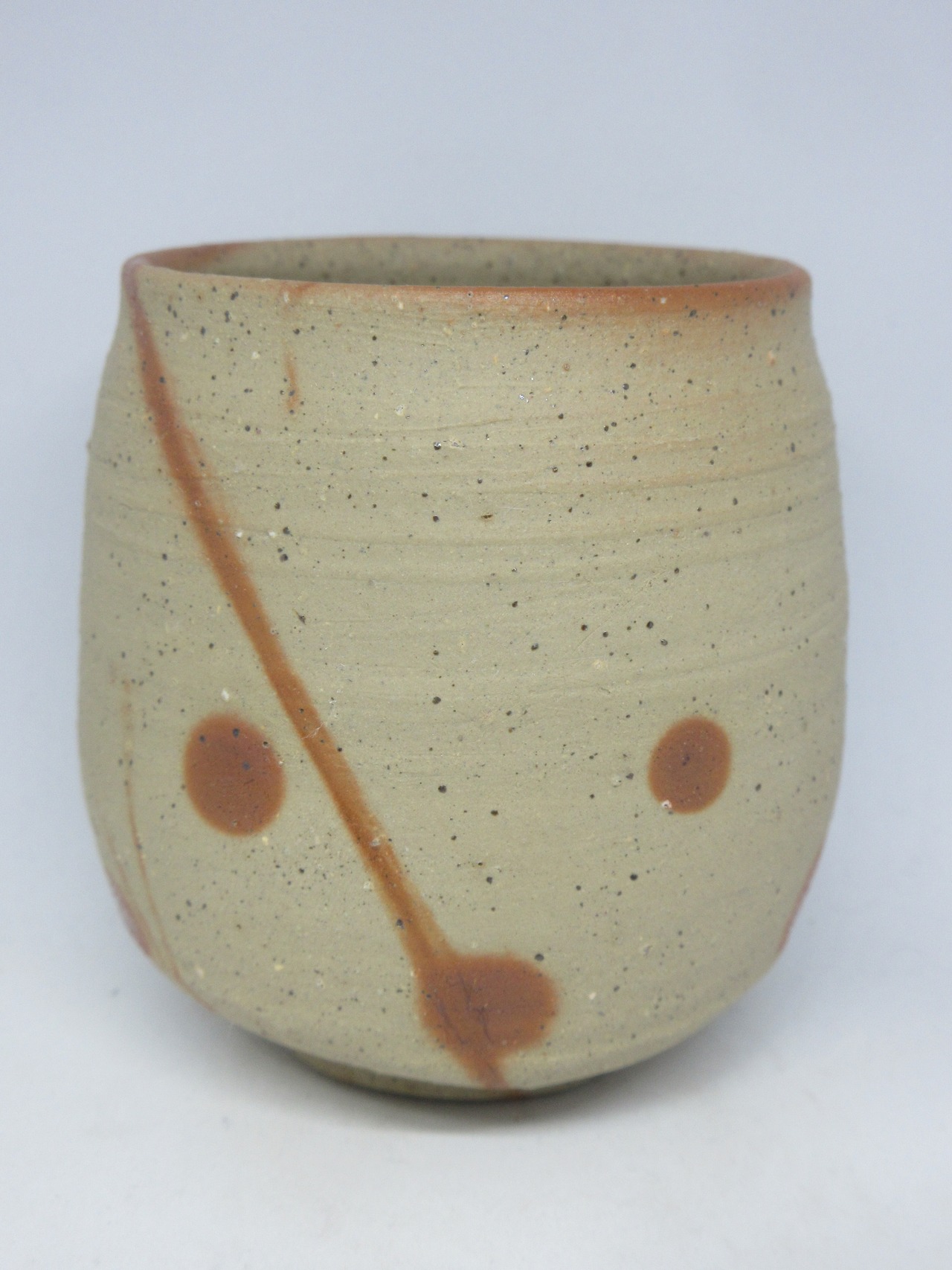緋襷の水玉湯呑です。作者の得意とする技法でチャーミングな作品です。