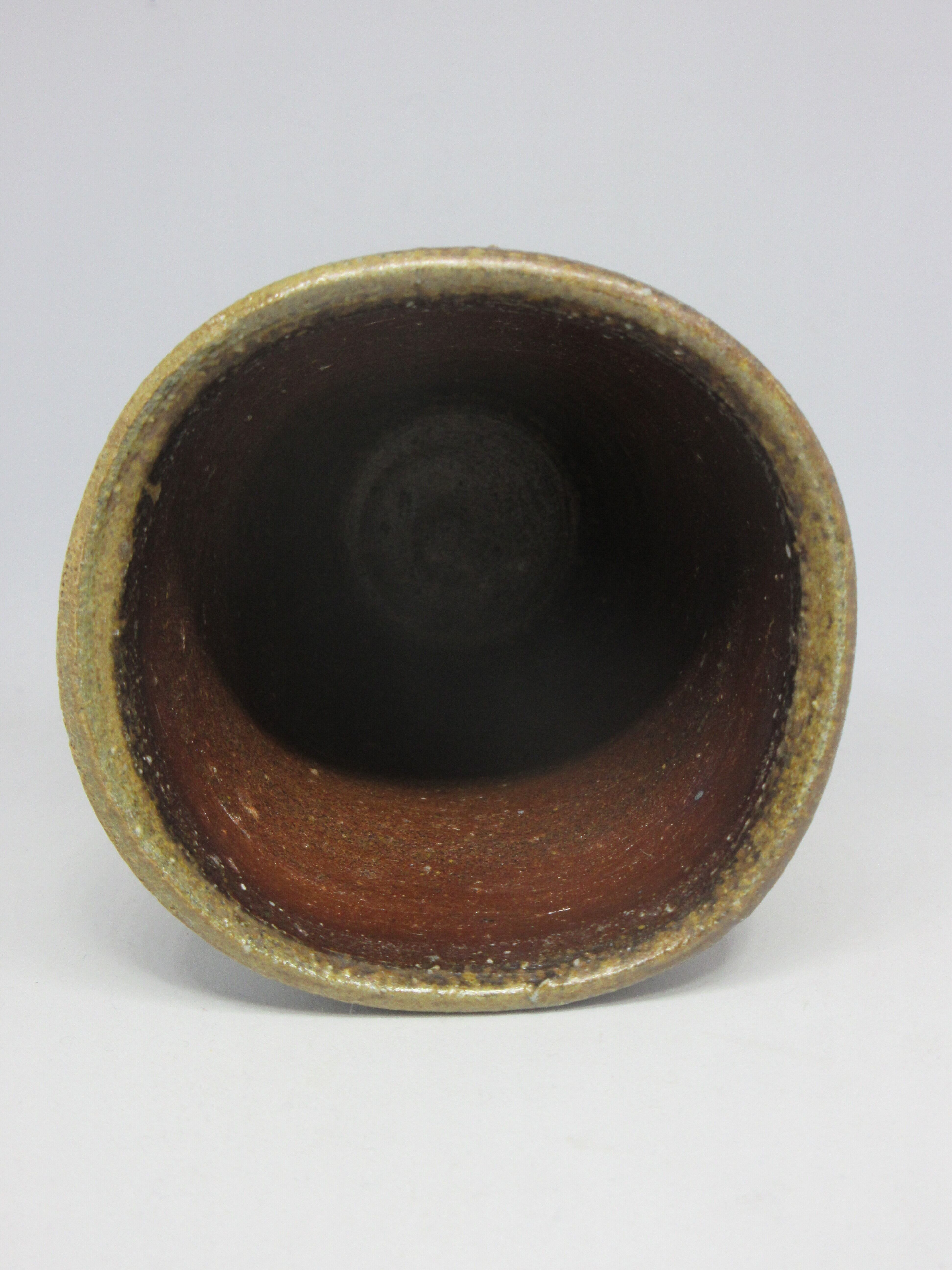 茶色の地肌に下部の灰色の窯変が特徴のビアマグです。