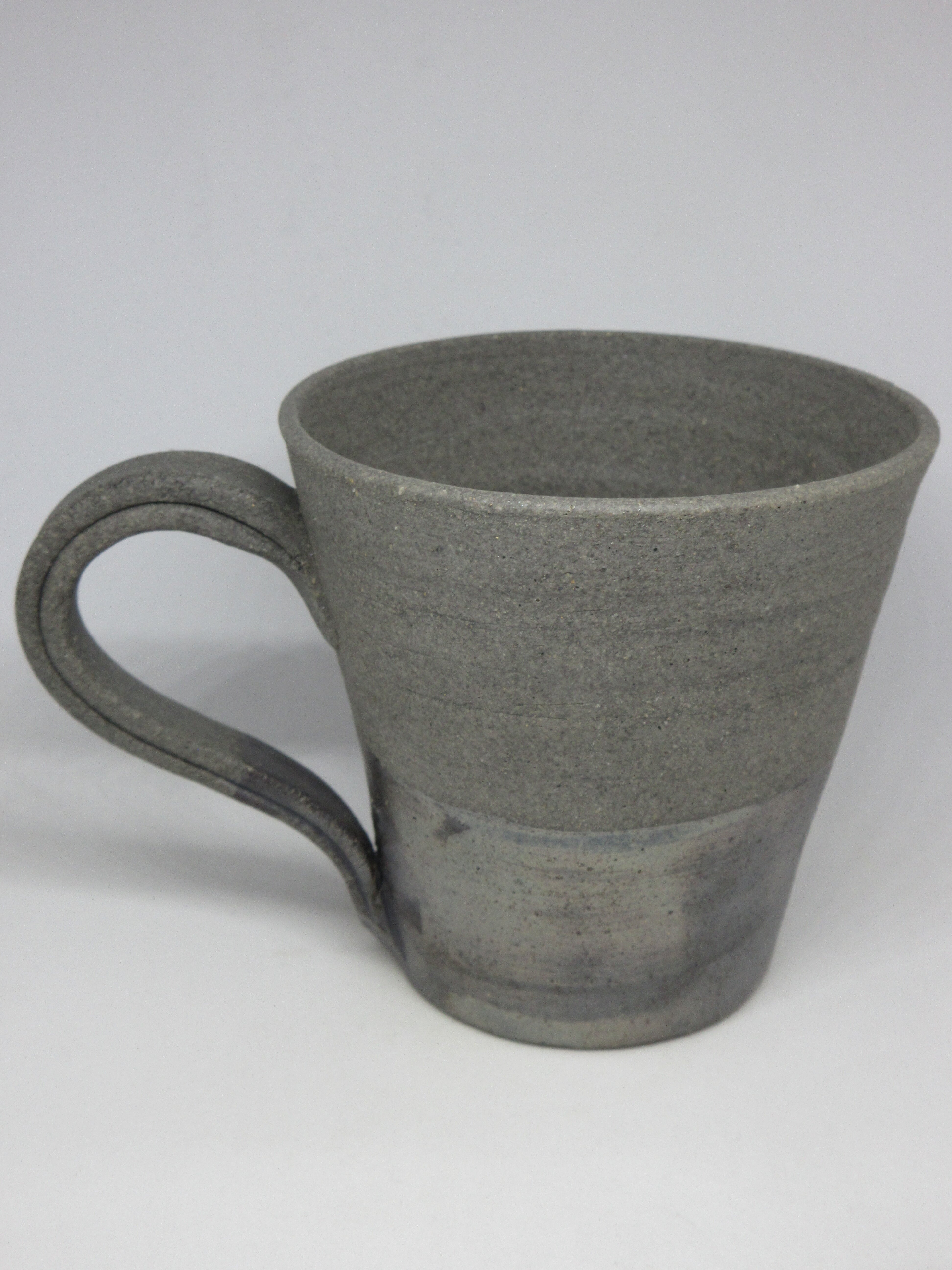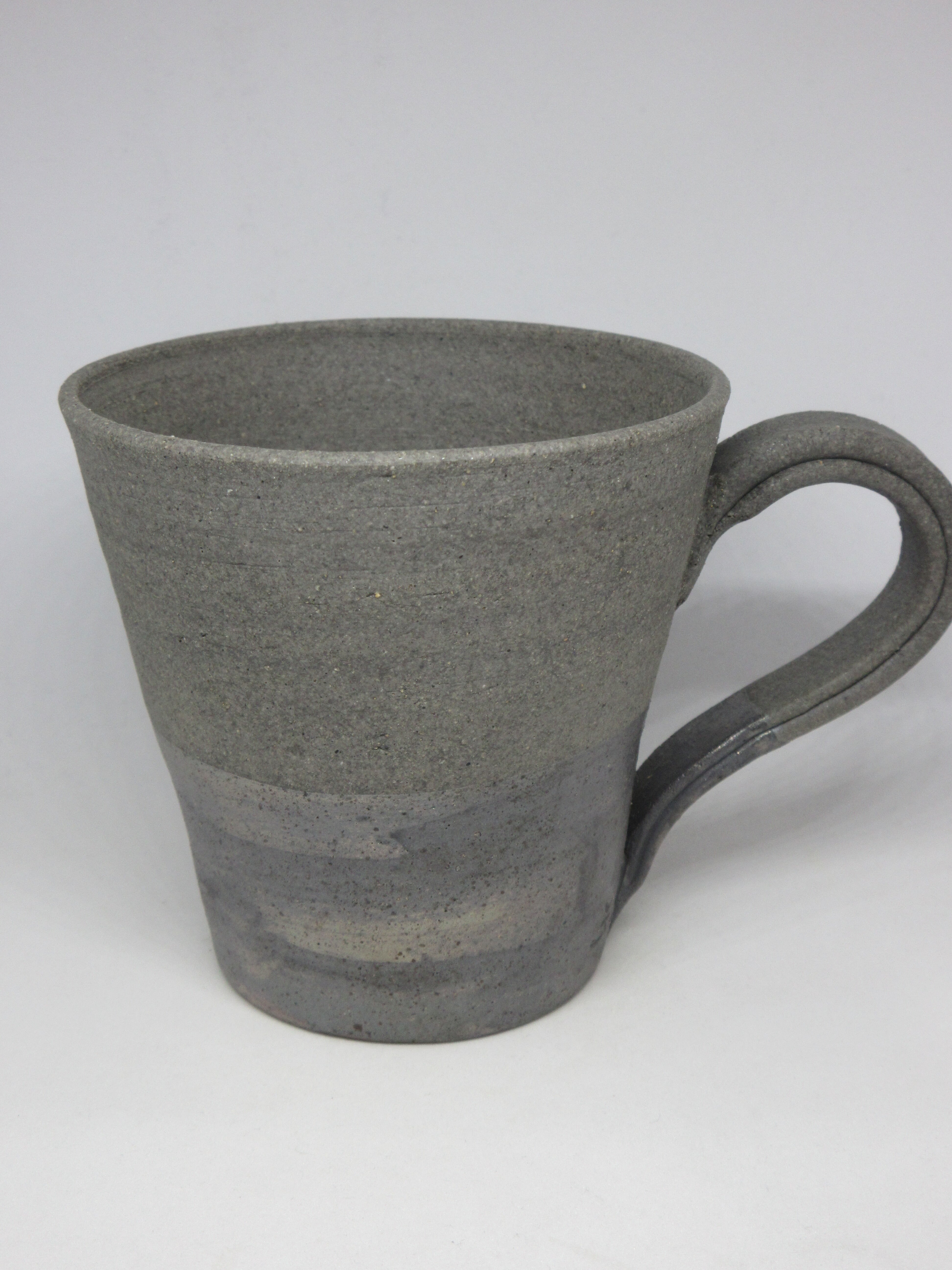 青備前のマグカップです。田んぼの鉄分の多いバクテリアを塗って焼かれた事により、下部に美しい光沢が現れています。