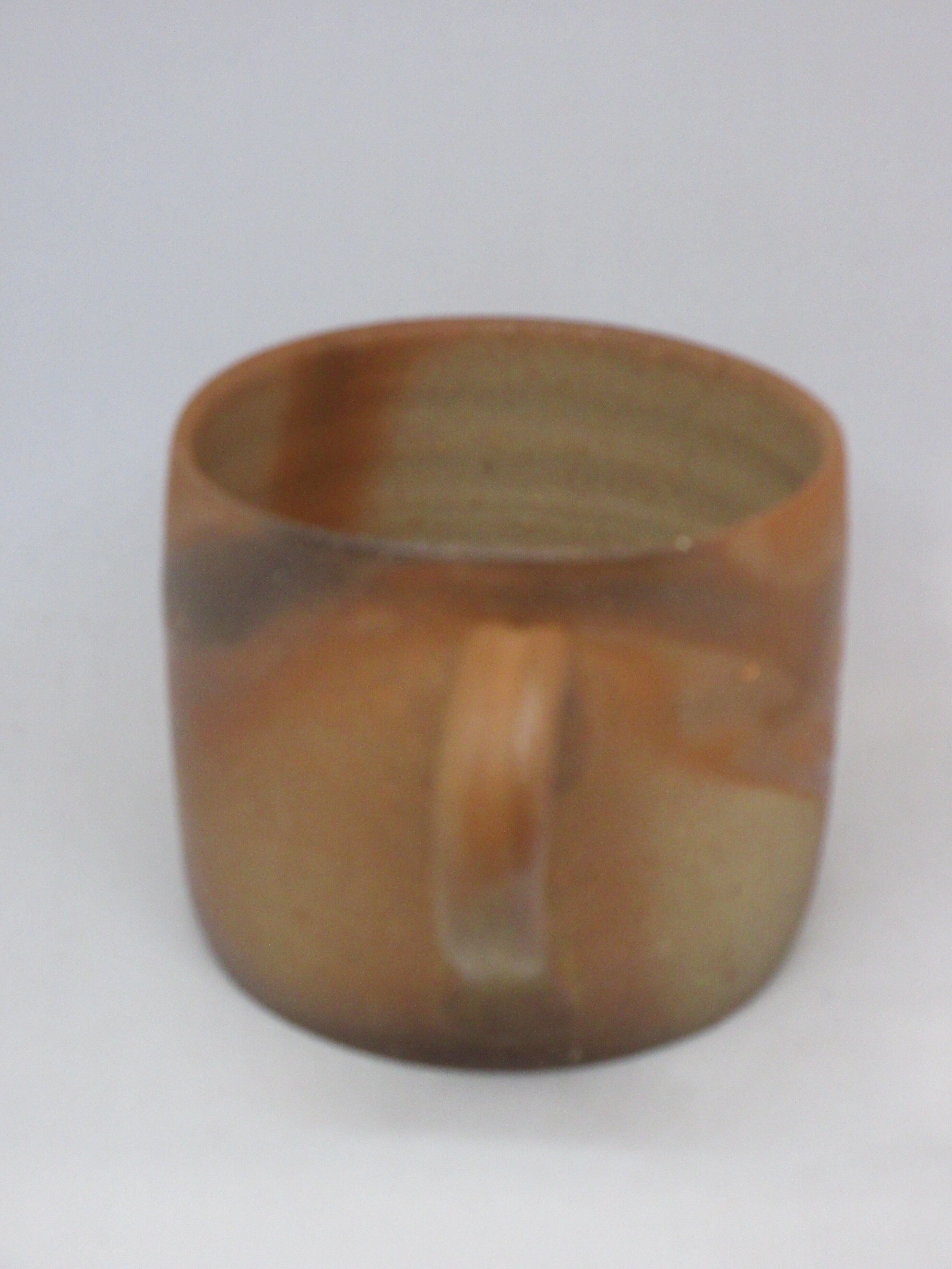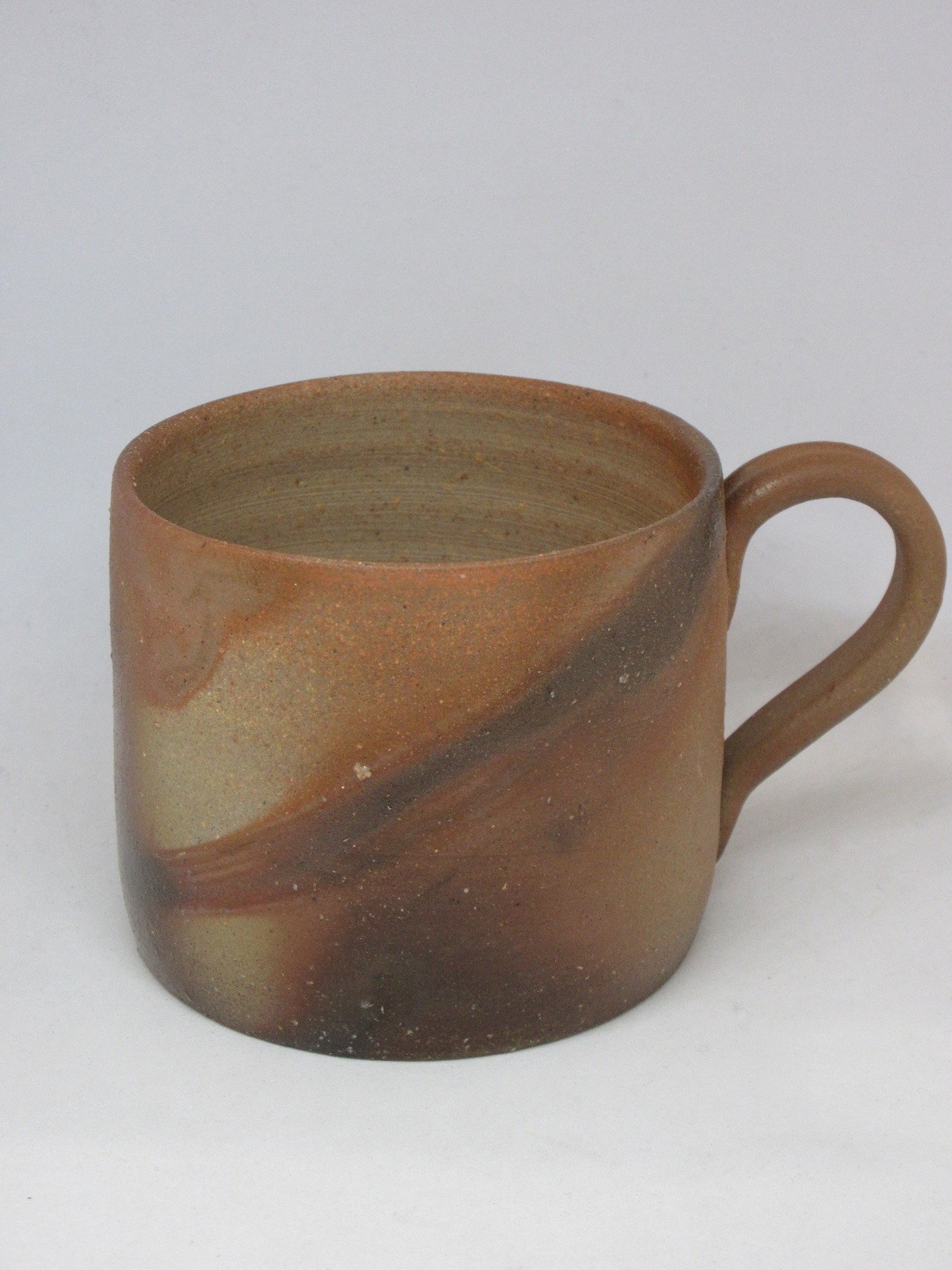緋襷のマグカップです。襷の発色が黒っぽいところ、赤いところと変化のある作品です。