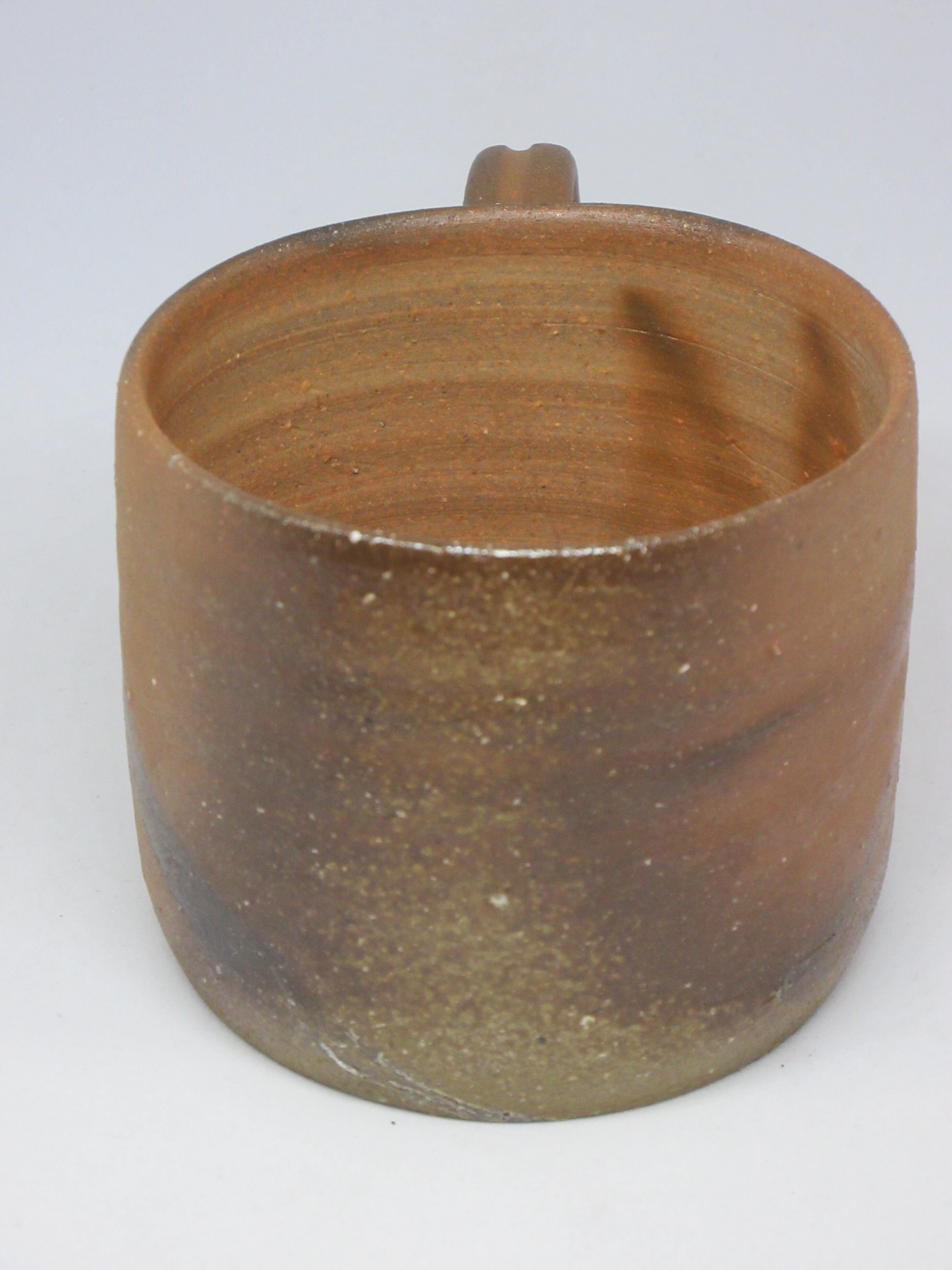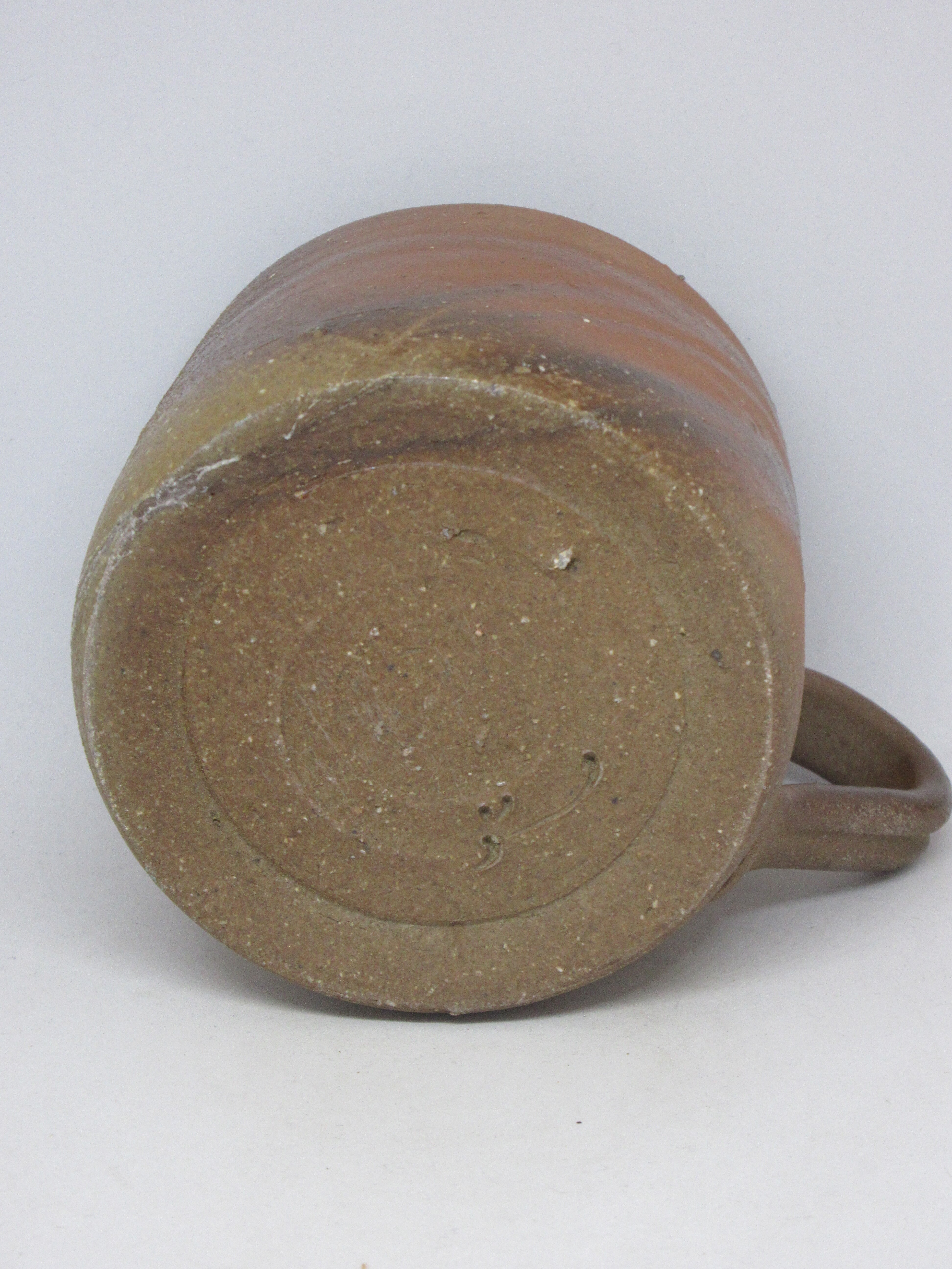 緋襷のマグカップです。襷の発色が黒っぽいところ、赤いところと変化のある作品です。